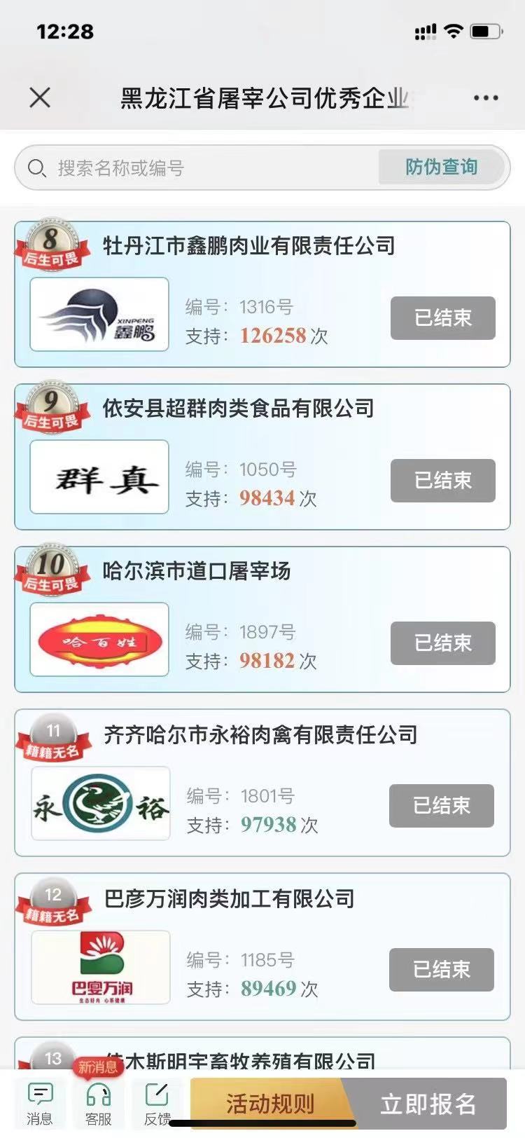 牡丹江市鑫鵬肉業(yè)有限責(zé)任公司參加黑龍江省屠宰行業(yè)誠信企業(yè)評選名列第八!