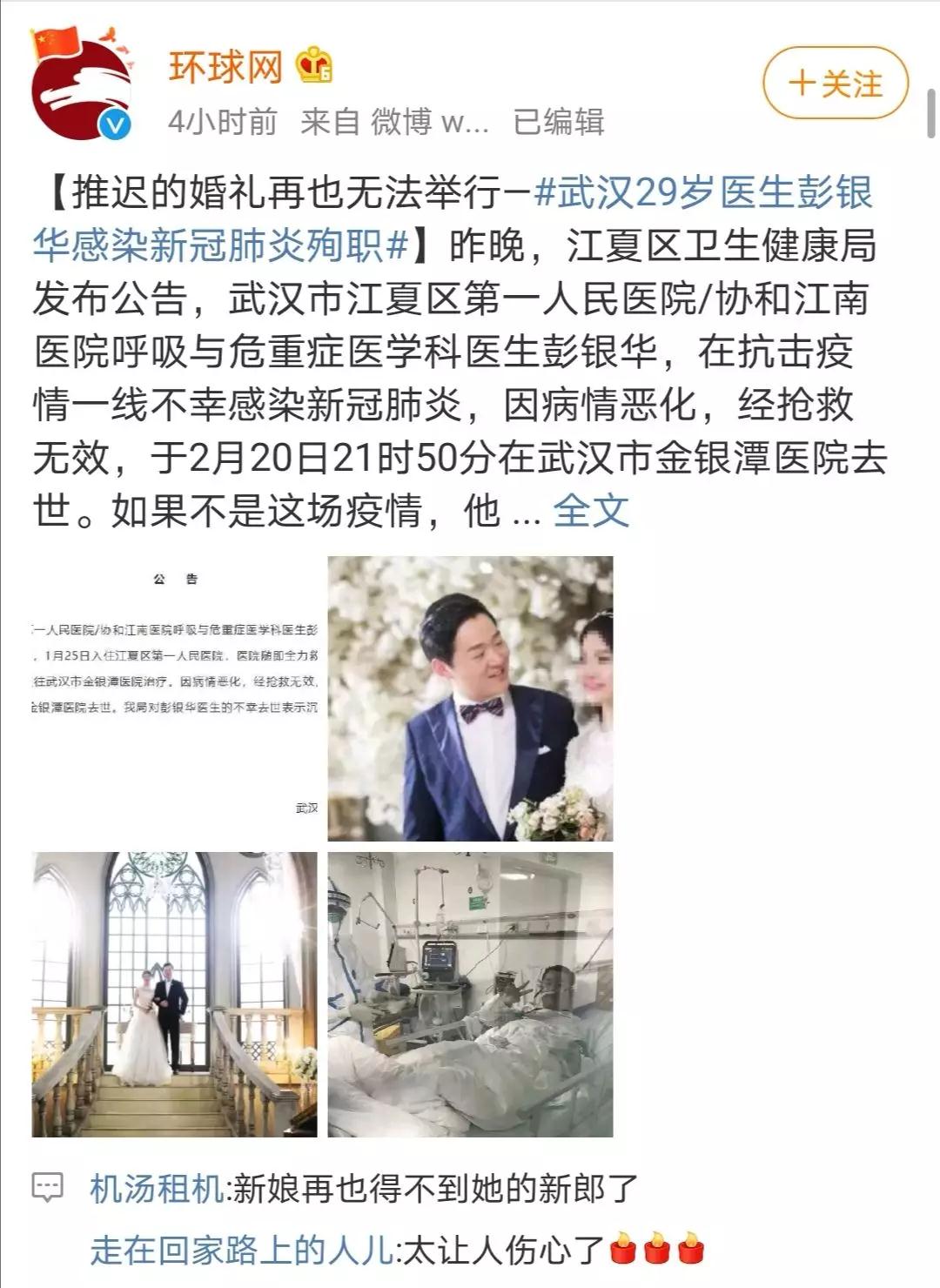 29歲的醫(yī)生彭銀華不幸感染新冠肺炎病情惡化離世,他原定在正月初八又推遲的婚禮再也無法舉辦了,他放在辦公桌抽屜里的請柬再也沒辦法發(fā)出去了,他的未婚妻再也等不到心上人平安歸來了。